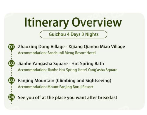 If you're seeking a peaceful destination with fresh air, a place that preserves the characteristics of Chinese minorities, and tourist attractions in China's beautiful mountain areas, our tour is the perfect choice.